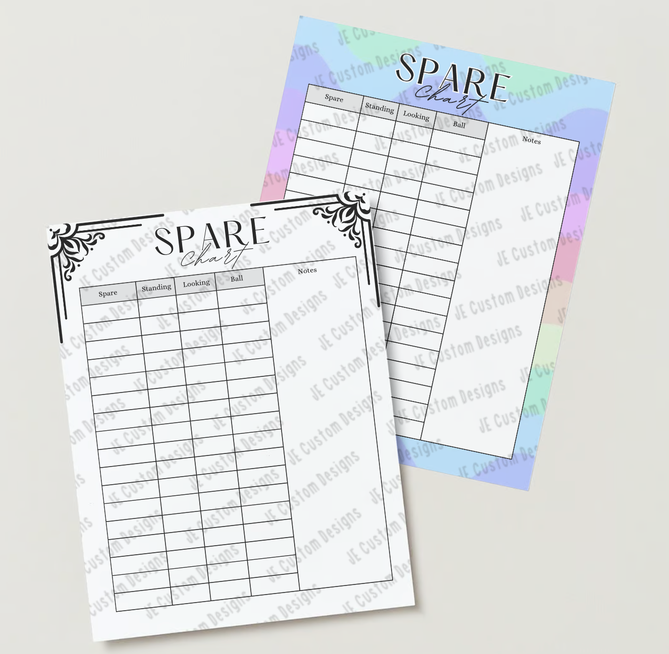 Keep track of your moves for spares by using this spare chart! This a pdf document that you can download and print. This package includes 10 designed sheets to use at will.