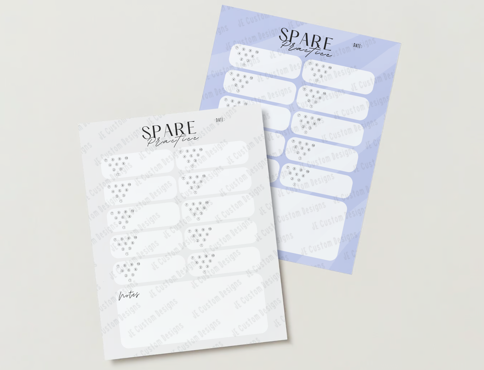 Download your spare sheet to print at will and use whenever you need to focus on spares. Available in PDF format. The files will also include multiple designed backgrounds to make spare shooting repetition fun!