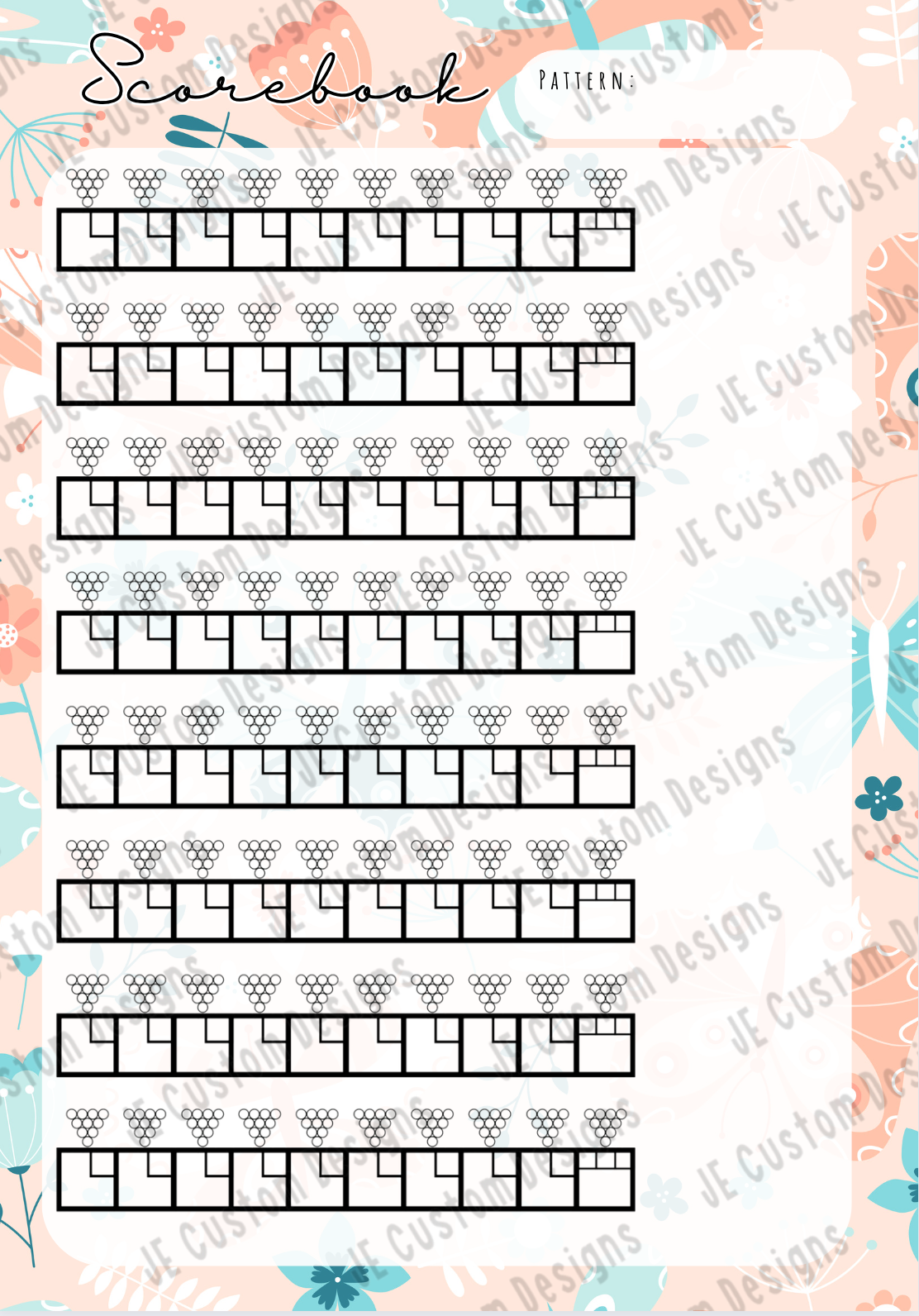 This journal is intended for keeping track of your tournaments with a 8 game layout for scorekeeping. The ease of notes and score taking are at its best within this journal as each page opens up to a single note sheet and scoresheet with NO gloss paper. Enjoy 58 unique designs focused on spring florals and bright colors!